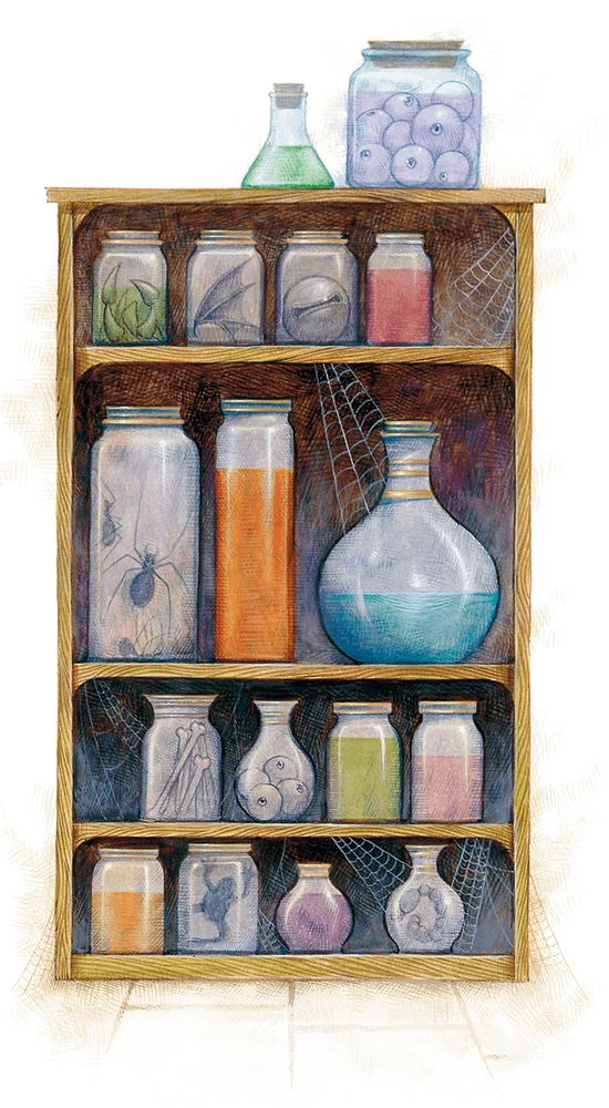 Essential for wizards, a spellbook is a leather-bound tome with 100 blank vellum pages suitable for recording spells.