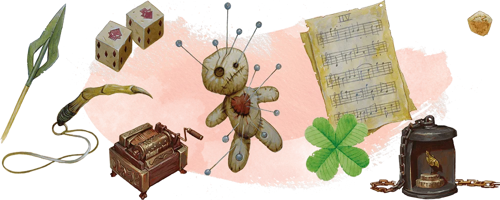When you make your character, you can roll once on the Trinkets table to gain a trinket, a simple item lightly touched by mystery. The DM might also use this table. It can help stock a room in a dungeon or fill a creature’s pockets.