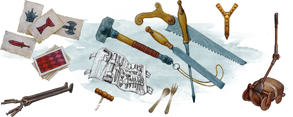 These special tools include the items needed to pursue a craft or trade. The table shows examples of the most common types of tools, each providing items related to a single craft. Proficiency with a set of artisan’s tools lets you add your proficiency bonus to any ability checks you make using the tools in your craft. Each type of artisan’s tools requires a separate proficiency.