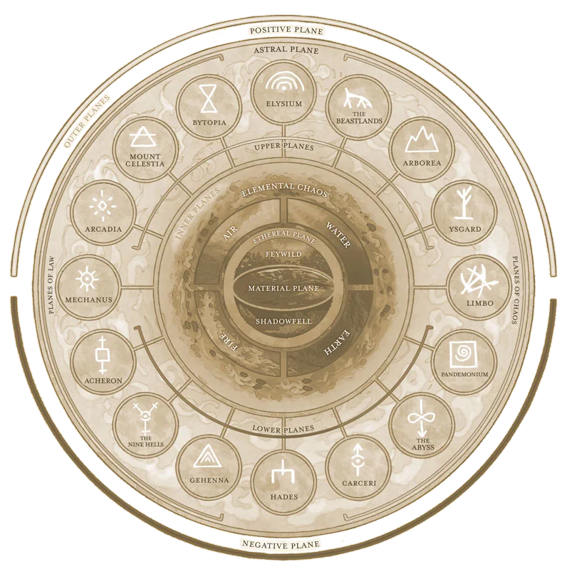 Beyond the Material Plane, the various planes of existence are realms of myth and mystery. They’re not simply other worlds, but different qualities of being, formed and governed by spiritual and elemental principles abstracted from the ordinary world.