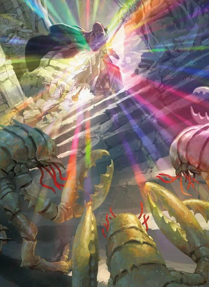 Eight multicolored rays of light flash from your hand. Each ray is a different color and has a different power and purpose. Each creature in a 60-foot cone must make a Dexterity saving throw. For each target, roll a d8 to determine which color ray affects it.